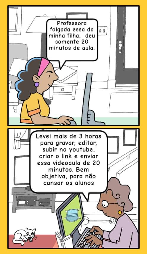 E pensar que muitas pessoas comentavam no início do período de suspensão das aulas presenciais, que os professores estavam de “férias“! Quando retornaram, por meio de aulas remotas, foram fortemente julgados e submetidos por análises precipitadas que desconsideravam a histórica precariedade do trabalho docente (dentre outros, os baixos salários, falta de materiais, de incentivo e de tempo para capacitação continuada). Prefiro pensar que tais julgamentos são por consequência de desinformação ou da mera reprodução da opinião alheia.